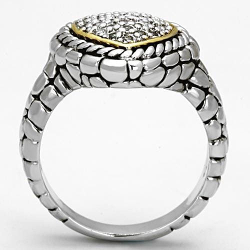 3W333 – Reverse Two-Tone Brass Ring with AAA Grade CZ in Clear